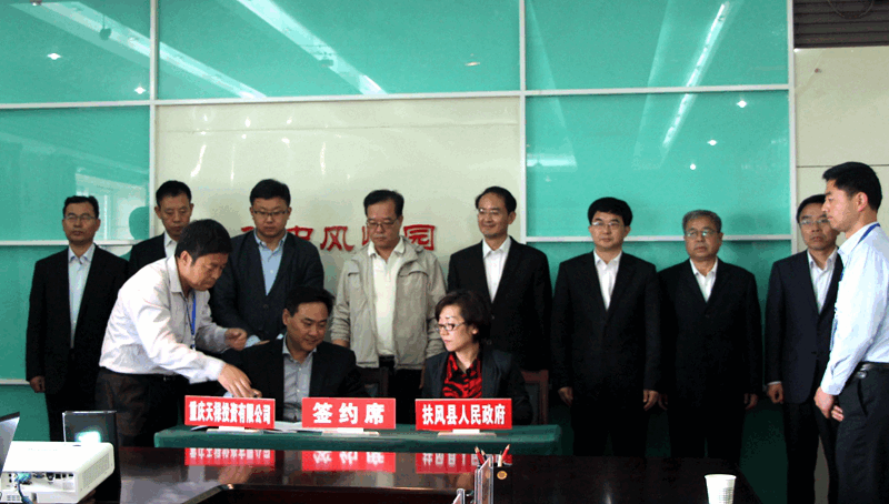 龚新安与副县长段葆青签约。重庆天海星集团公司总裁王群生、中机建筑技术研究院院长刘彬与县上领导周宇松、陈爱民、梁宗建、黎焕焕、齐军建、张扬鉴签。