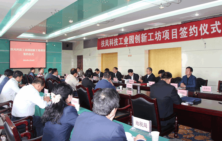 4月29日,我县举行扶风科技工业园创新工坊项目签约仪式。重庆陕西商会会长、重庆天禄投资有限公司董事长龚新安,县委书记周宇松等领导出席签约仪式。县委副书记、县长陈爱民主持签约仪式。