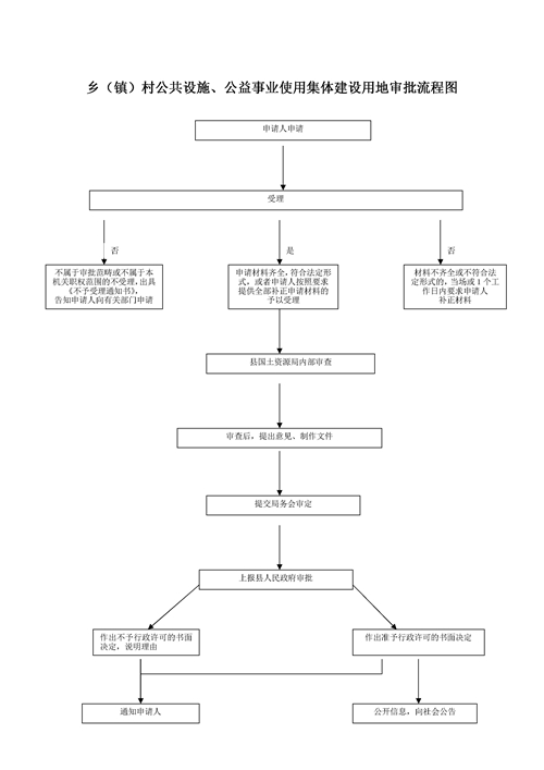 《中华人民共和国土地管理法》(1986年中华人民共和国主席令第41号公布,2004年中华人民共和国主席令第28号第二次修正)第六十一条 乡(镇)村公共设施、公益事业建设,需要使用土地的,经乡(镇)人民政府审核,向县级以上地方人民政府土地行政主管部门提出申请,按照省、自治区、直辖市规定的批准权限,由县级以上地方人民政府批准;其中,涉及占用农用地的,依照本法第四十四条的规定办理审批手续。 |
