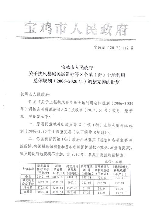 扶风县县乡土地利用总体规划(2006——2020年)调整完善文本已分别经省市人民政府批准,现予以公示