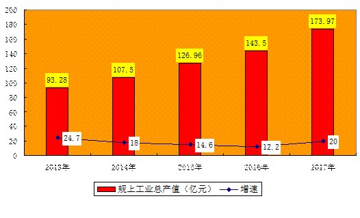全年全部工业增加值完成49.75亿元,比上年增长13.8%,占生产总值的比重达到39.9%。其中全县60户规模以上工业企业(年主营业务收入2000万元及以上的工业法人企业)完成工业总产值173.97亿元,比上年增长20%;实现工业增加值47.4亿元,比上年增长14.3%。