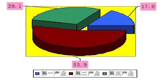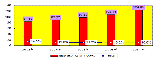 据初步核算,全年实现地区生产总值124.65亿元,比上年同期增长10.5%。其中:第一产业完成增加值21.28亿元,比上年同期增长3.7%;第二产业完成增加值67.16亿元,比上年同期增长12.9%;第三产业完成增加值36.21亿元,比上年同期增长10.8%。