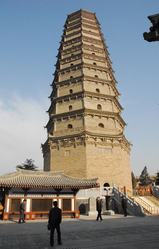宋代法门寺承袭了唐代皇家寺院之宏阔气势,被恢复到最大规模,当时仅二十四院之一的“浴室院”即可日浴千人。宋徽宗曾手书“皇帝佛国”四字于山门之上。金元之际,法门寺仍是关中名刹,“藏经碑”中有寺僧抄写大藏经5000卷之记载。金人也刻“诗碑”盛赞其寺塔:“三级风檐压鲁地,九盘轮相壮秦川”。明清以后,法门寺逐渐衰落。明隆庆三年(1569),历经数百年历史的唐代四级木塔崩塌。明神宗万历七年(1579),地方绅士杨禹臣、党万良等捐资修塔,历时30年建成八棱十三级砖塔,高四十七米,极为壮观。清顺治十一年(1654)因地震塔体倾斜裂缝。民国二十八年(1939)在爱国志士朱子桥先生的主持下,完成了晚明以来最大规模的维修。文革期间,红卫兵欲挖地开塔,良卿法师点火自焚,用自己的生命保护了塔下珍宝。
