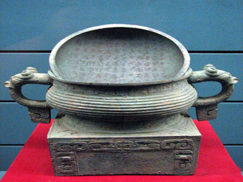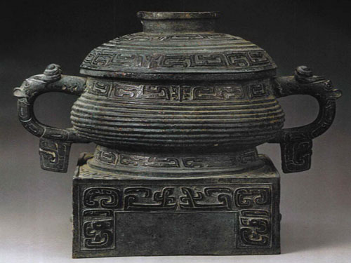 盖顶中央有圆形捉手,捉手外和口沿处饰以云雷纹衬地的变形兽面纹两周,间以高凸的覆瓦纹。