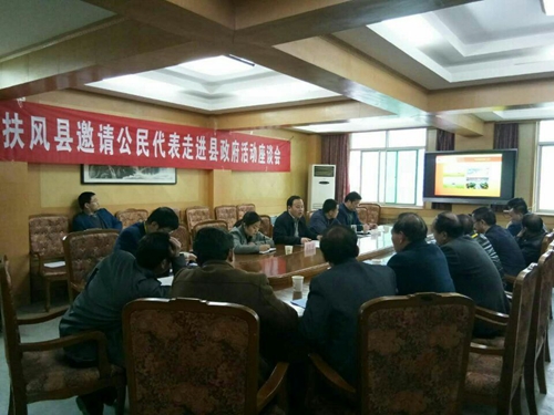 3月29日,我县举办2017年首期 “邀请公民代表走进县政府”活动。活动上,邀请20名来自绛帐镇的公民代表实地参观走访了县扶贫办。